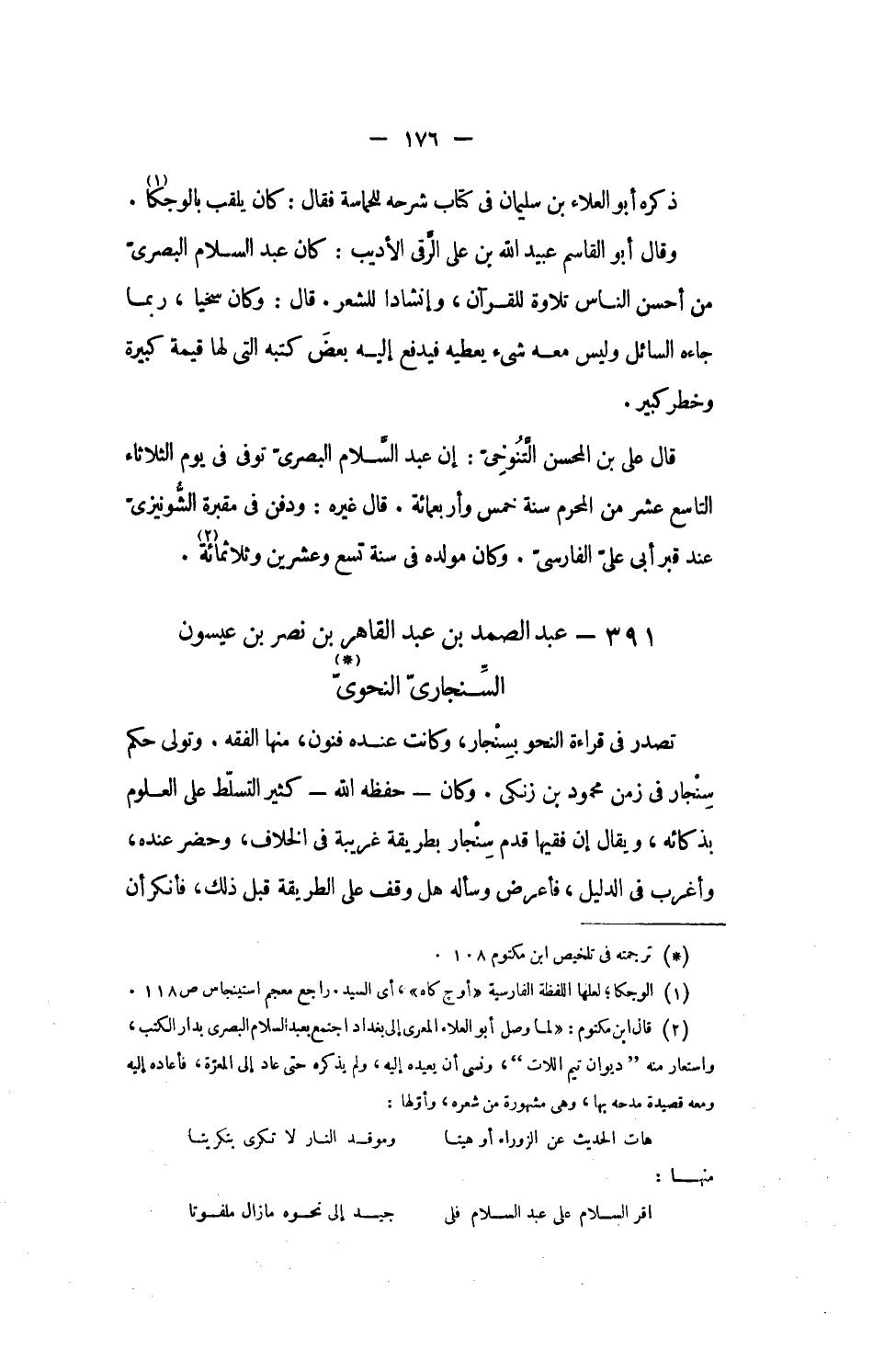 391 - عبد الصمد بن عبد القاهر بن نصر بن عيسون السّنجارىّ النحوىّ [1]