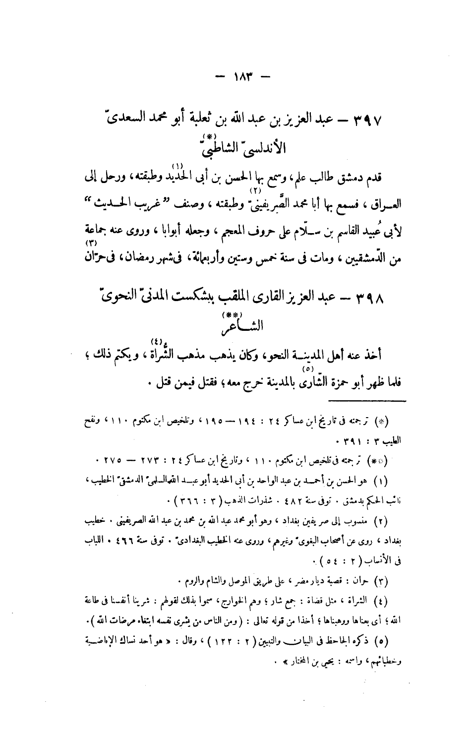 397 - عبد العزيز بن عبد الله بن ثعلبة أبو محمد السعدىّ الأندلسىّ الشاطبىّ [1]