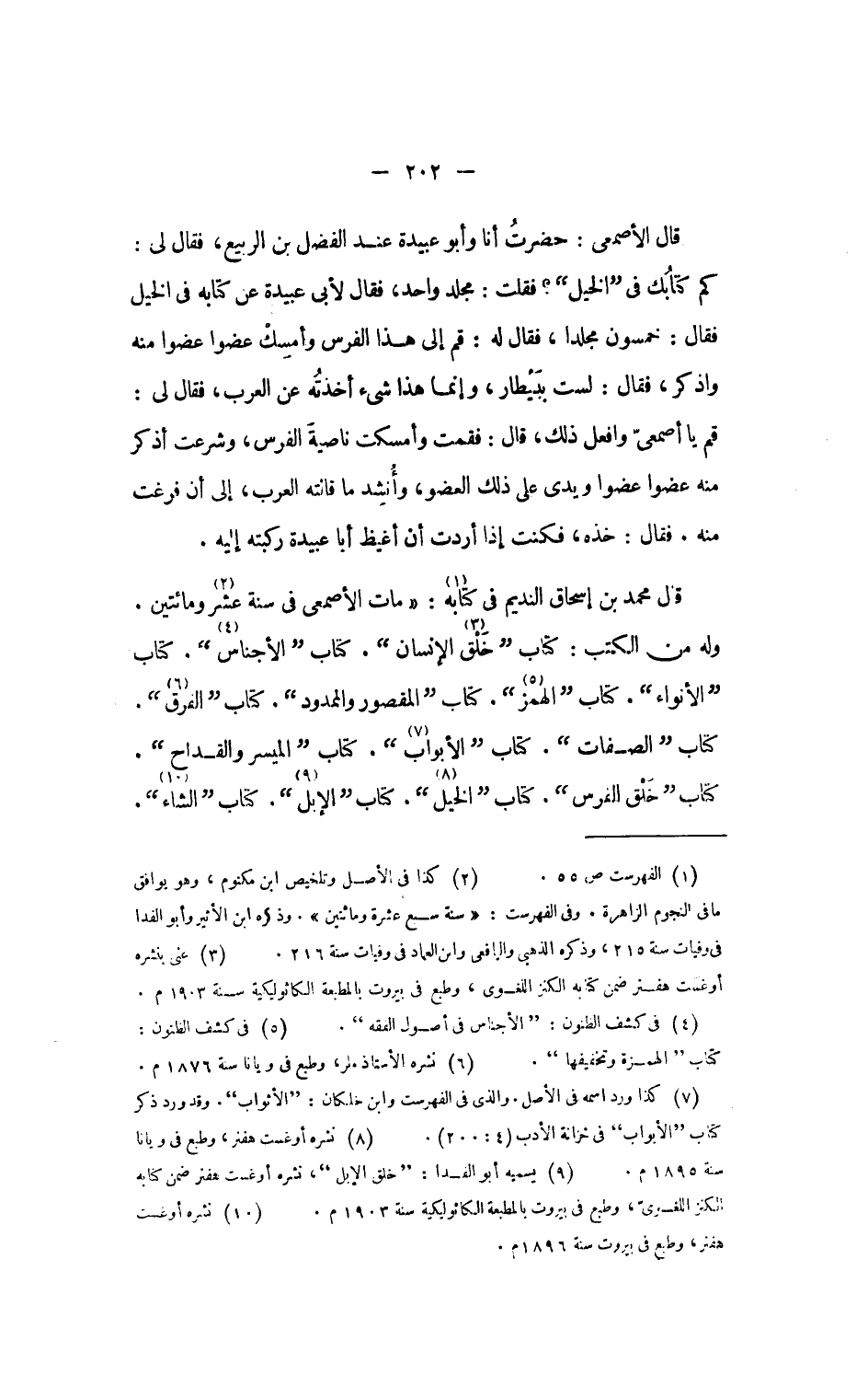 كتاب خلق الفرس. كتاب الخيل «8». كتاب الإبل «9». كتاب الشاء «10».