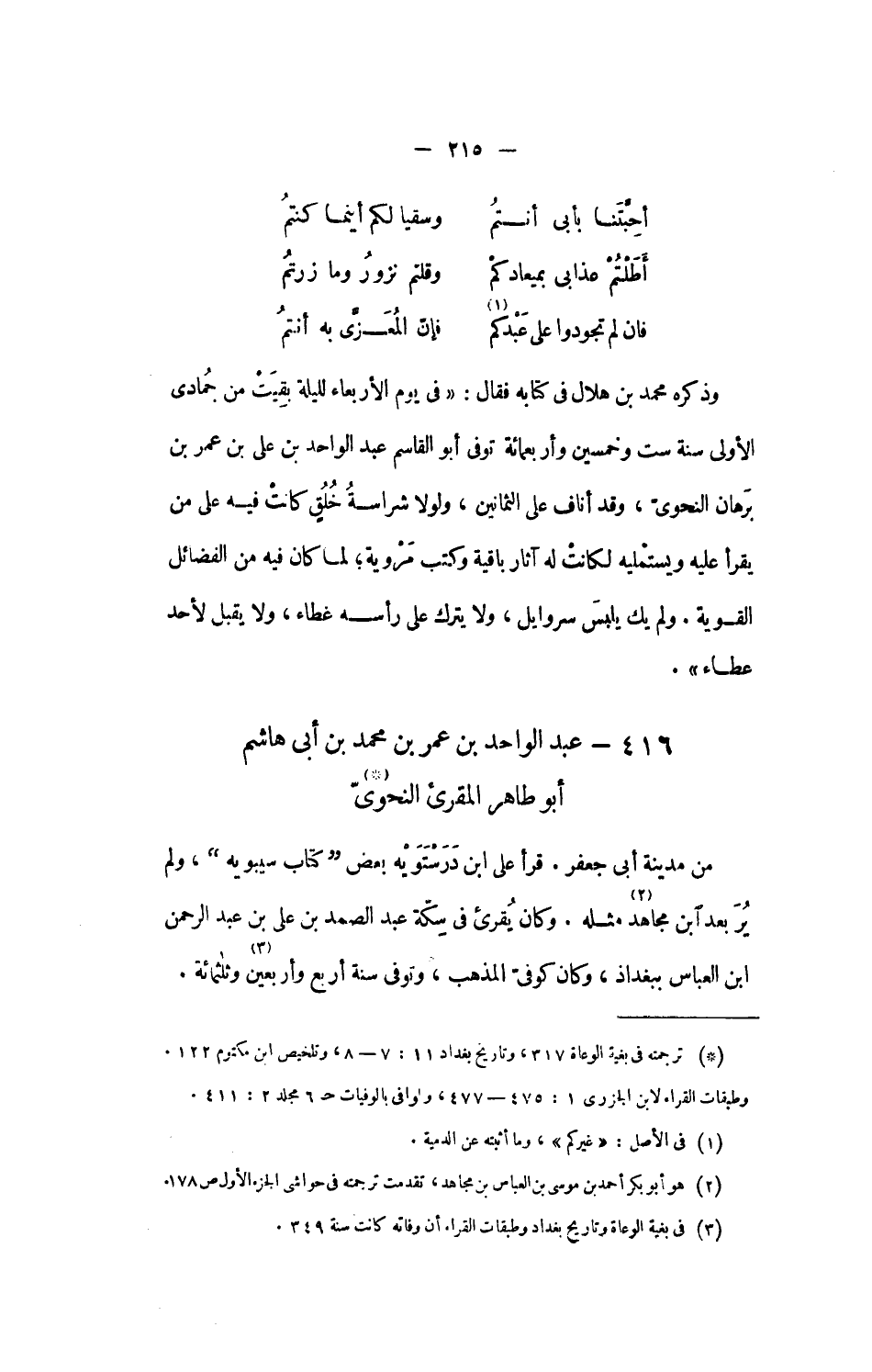 416 - عبد الواحد بن عمر بن محمد بن أبى هاشم أبو طاهر المقرئ النحوىّ [1]