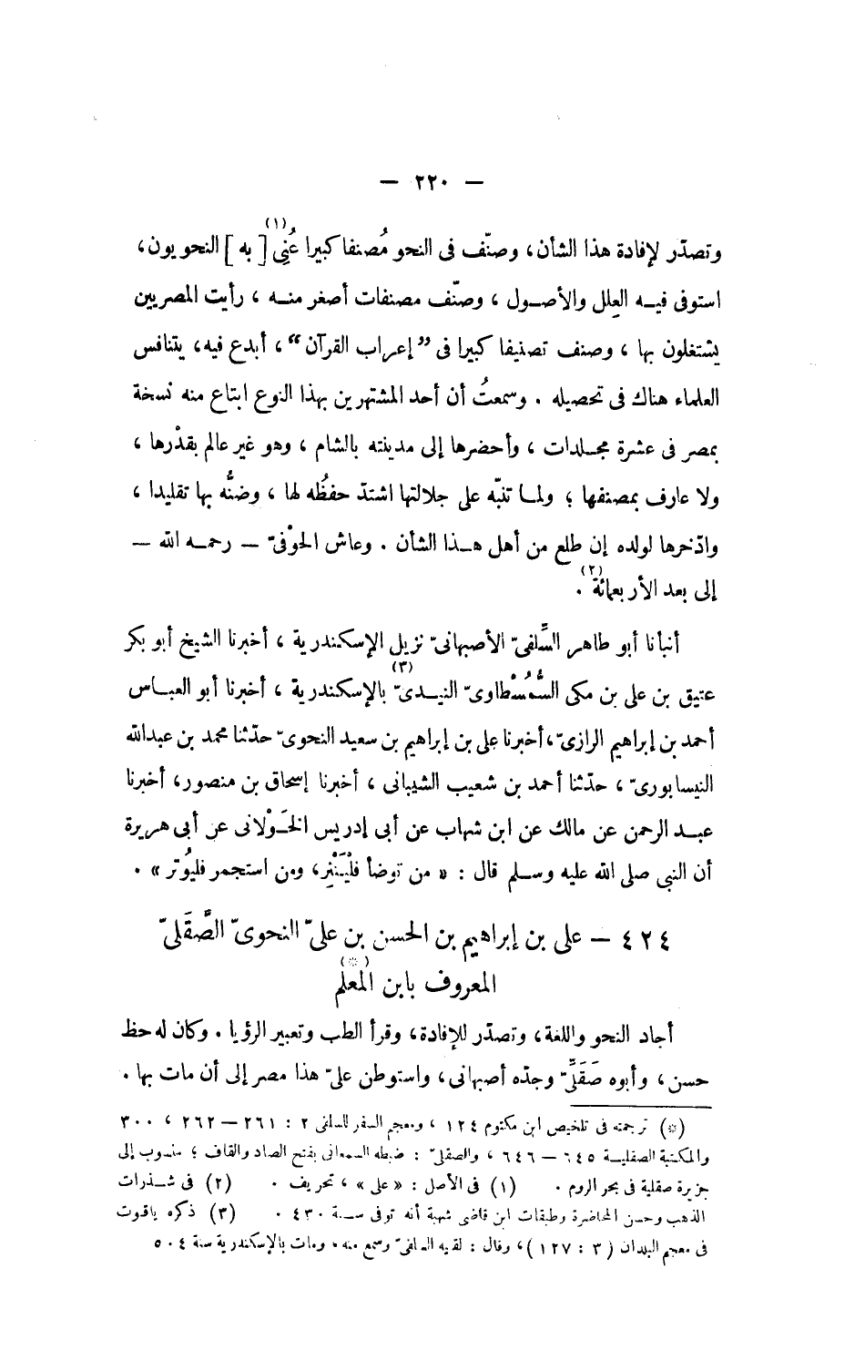 424 - على بن إبراهيم بن الحسن بن علىّ النحوىّ الصّقلىّ المعروف بابن المعلم [1]
