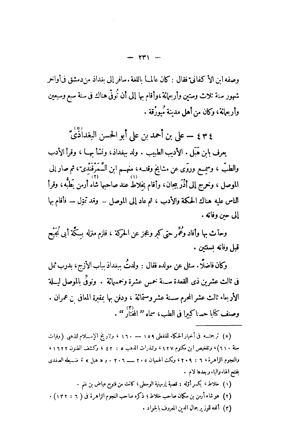 وصنف كتابا حسنا كبيرا فى الطب، سماه المختار «3».