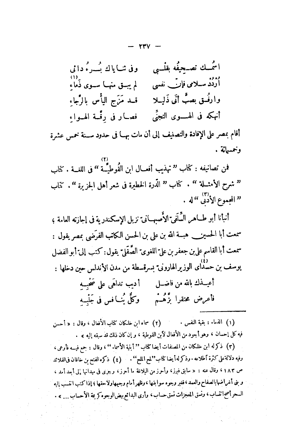 سمعت أبا القاسم على بن جعفر بن علىّ اللغوىّ الصّقلىّ يقول: كتب إلىّ أبو الفضل يوسف بن حسداى «4» الوزير الهارونىّ بسرقسطة من مدن الأندلس حين دخلها: