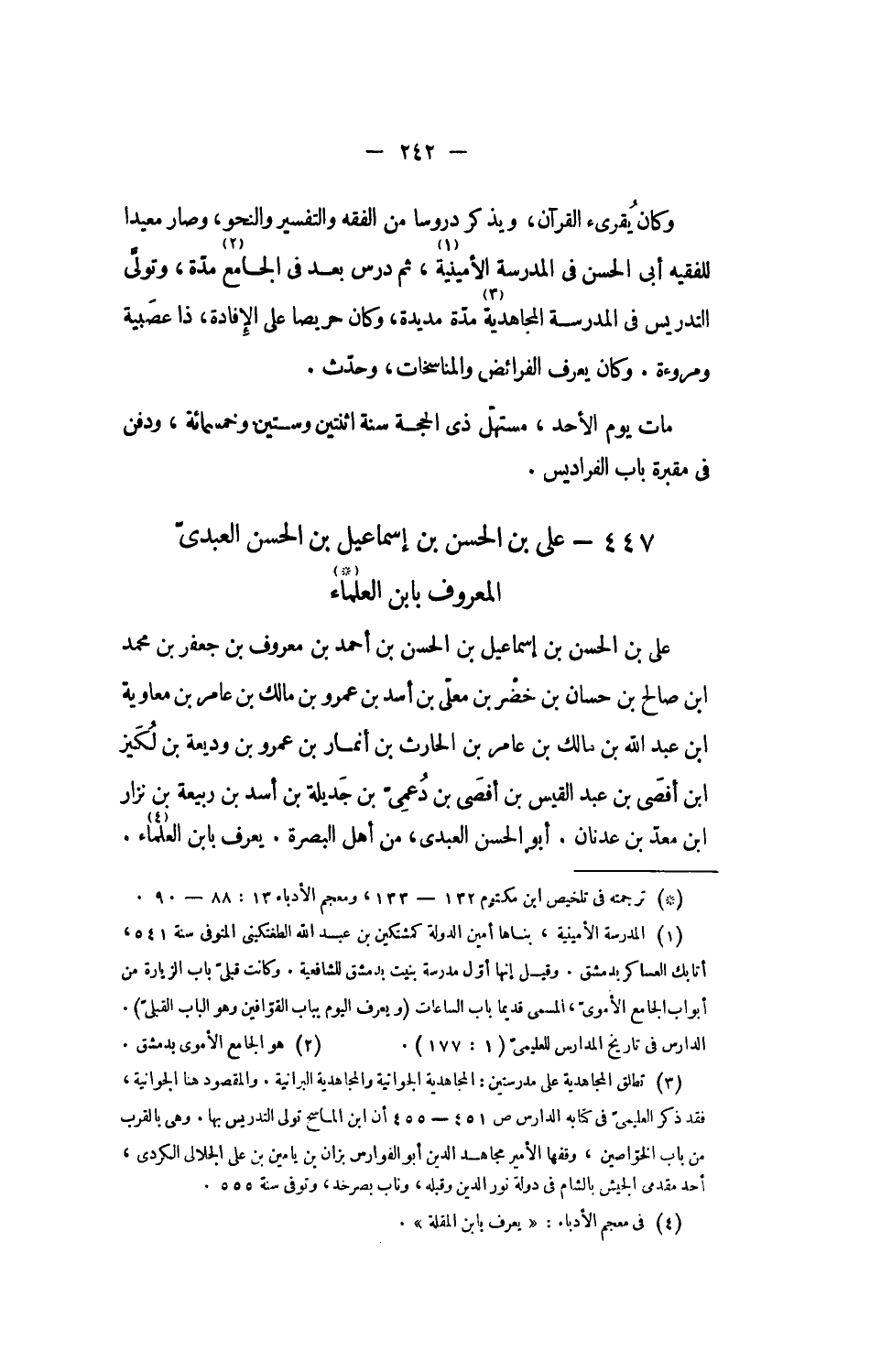 447 - على بن الحسن بن إسماعيل بن الحسن العبدىّ المعروف بابن العلماء [1]