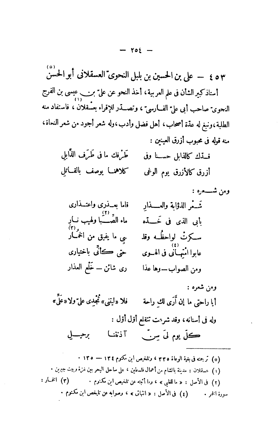 453 - على بن الحسين بن بلبل النحوىّ العسقلانى أبو الحسن [1]