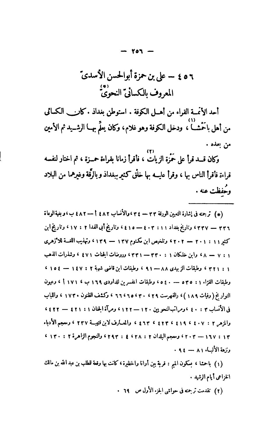 456 - على بن حمزة أبو الحسن الأسدىّ المعروف بالكسائىّ النحوىّ [1]