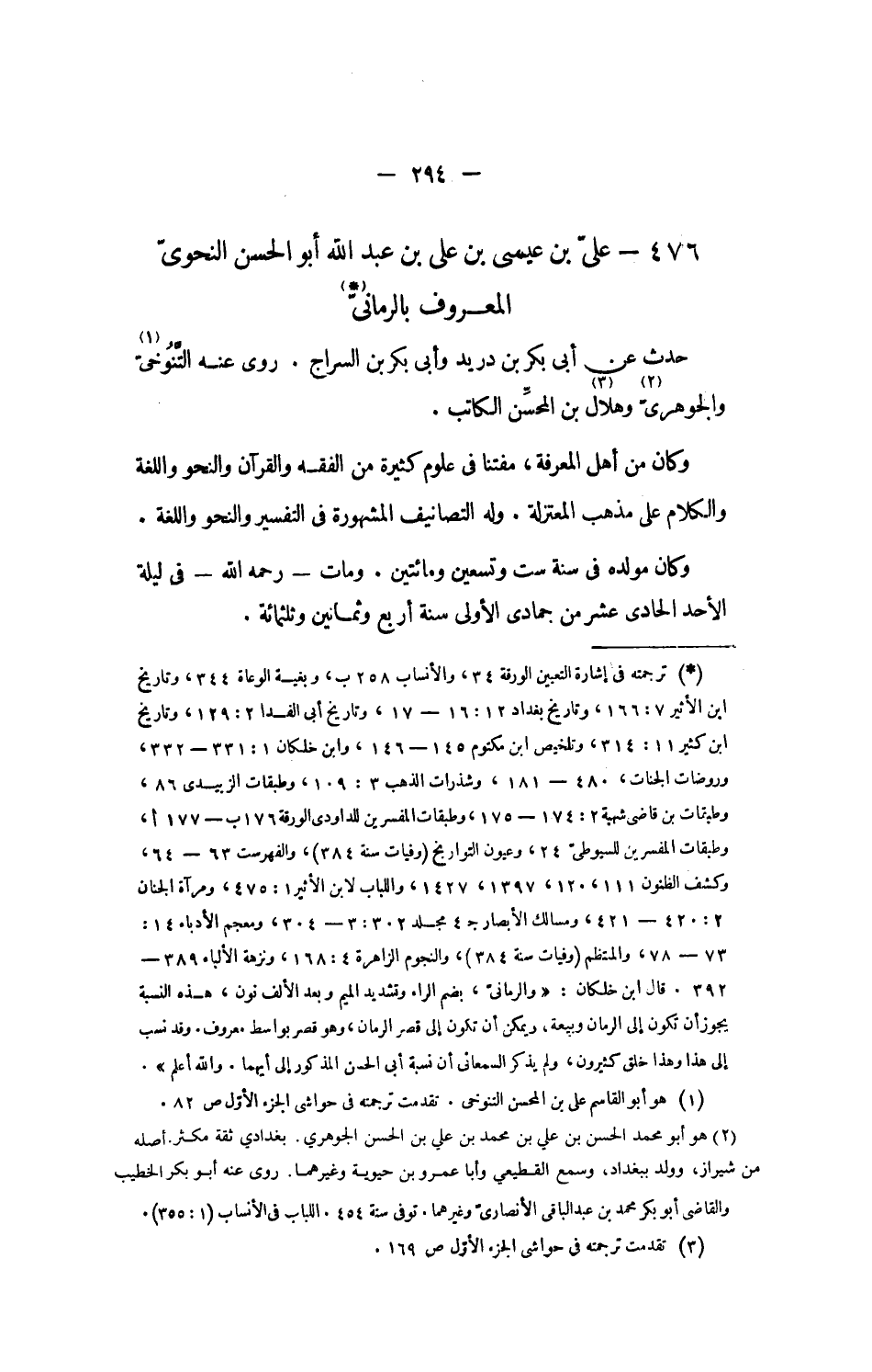 476 - علىّ بن عيسى بن على بن عبد الله أبو الحسن النحوىّ المعروف بالرمانىّ [1]