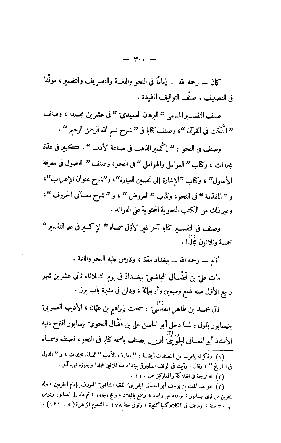 كان- رحمه الله- إماما فى النحو واللغة والتصريف والتفسير، موفّقا فى التصنيف. صنّف التواليف المفيدة.