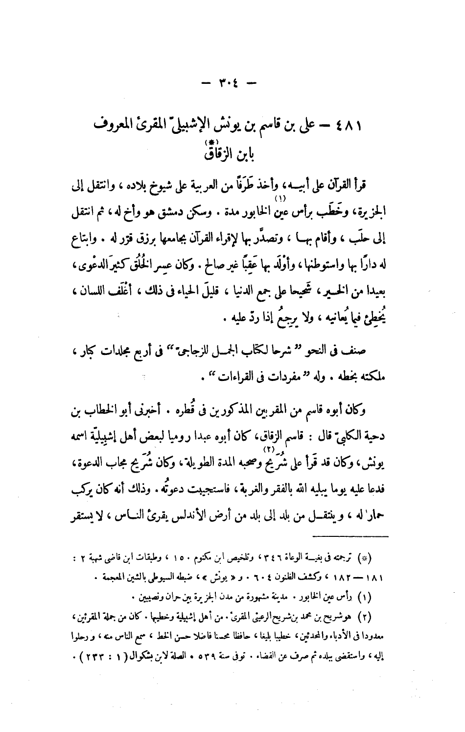 481 - على بن قاسم بن يونش الإشبيلىّ المقرئ المعروف بابن الزقاق [1]