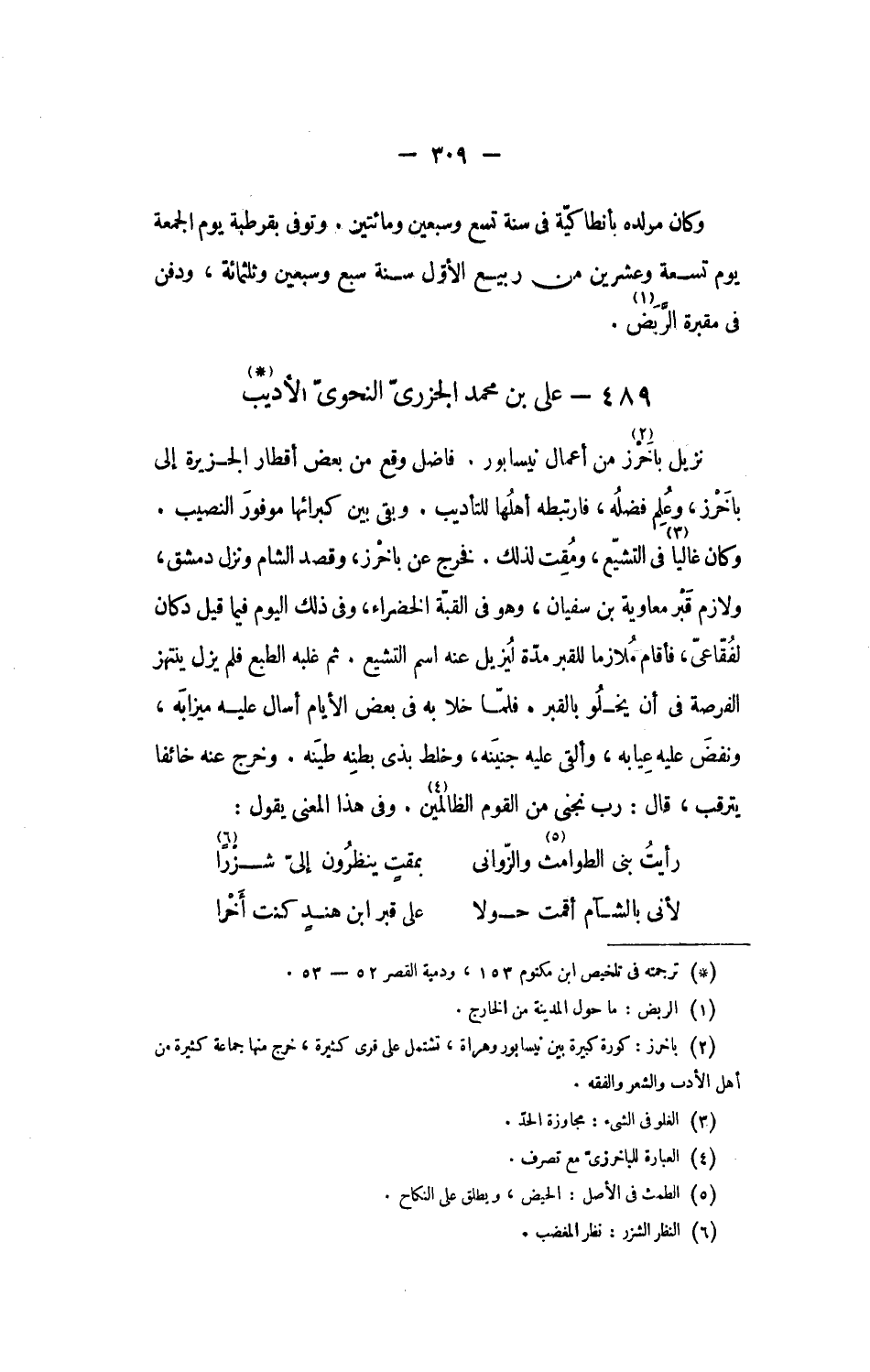 489 - على بن محمد الجزرىّ النحوىّ الأديب [1]