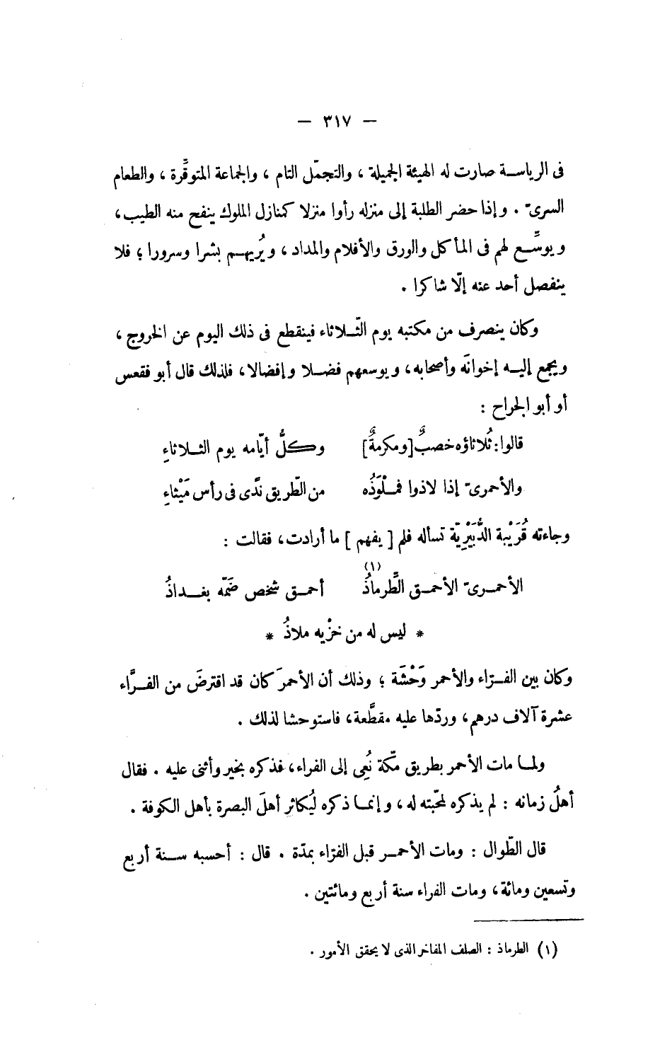 الأحمرىّ الأحمق الطّرماذ «1» ... أحمق شخص ضمّه بغداذ