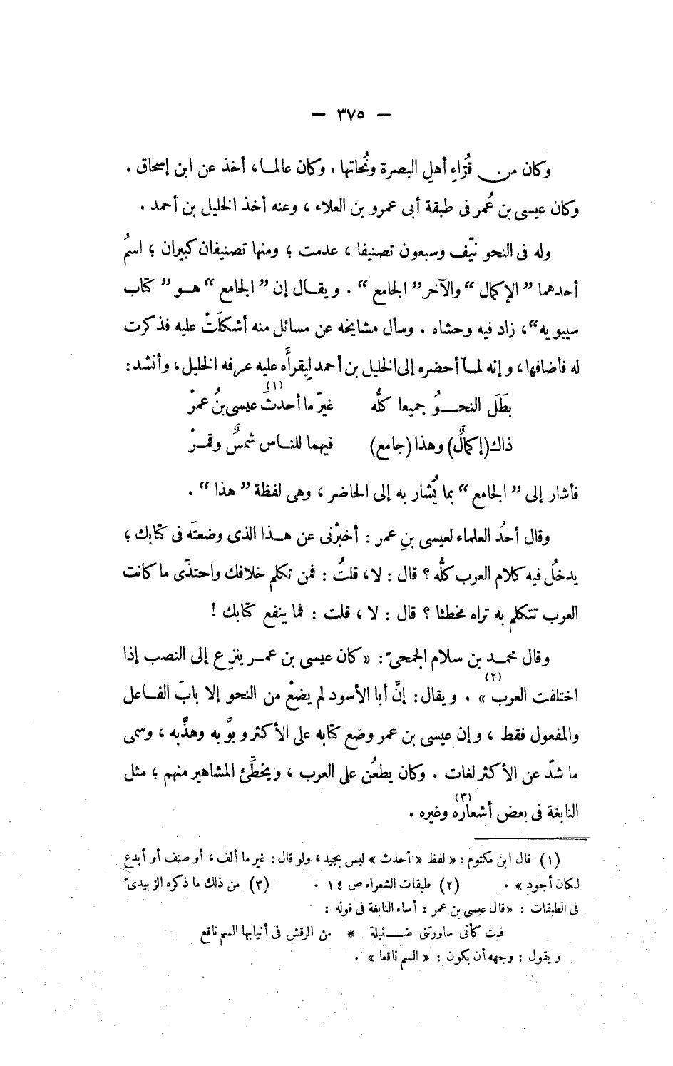 بطل النحو جميعا كلّه ... غير ما أحدث «1» عيسى بن عمر