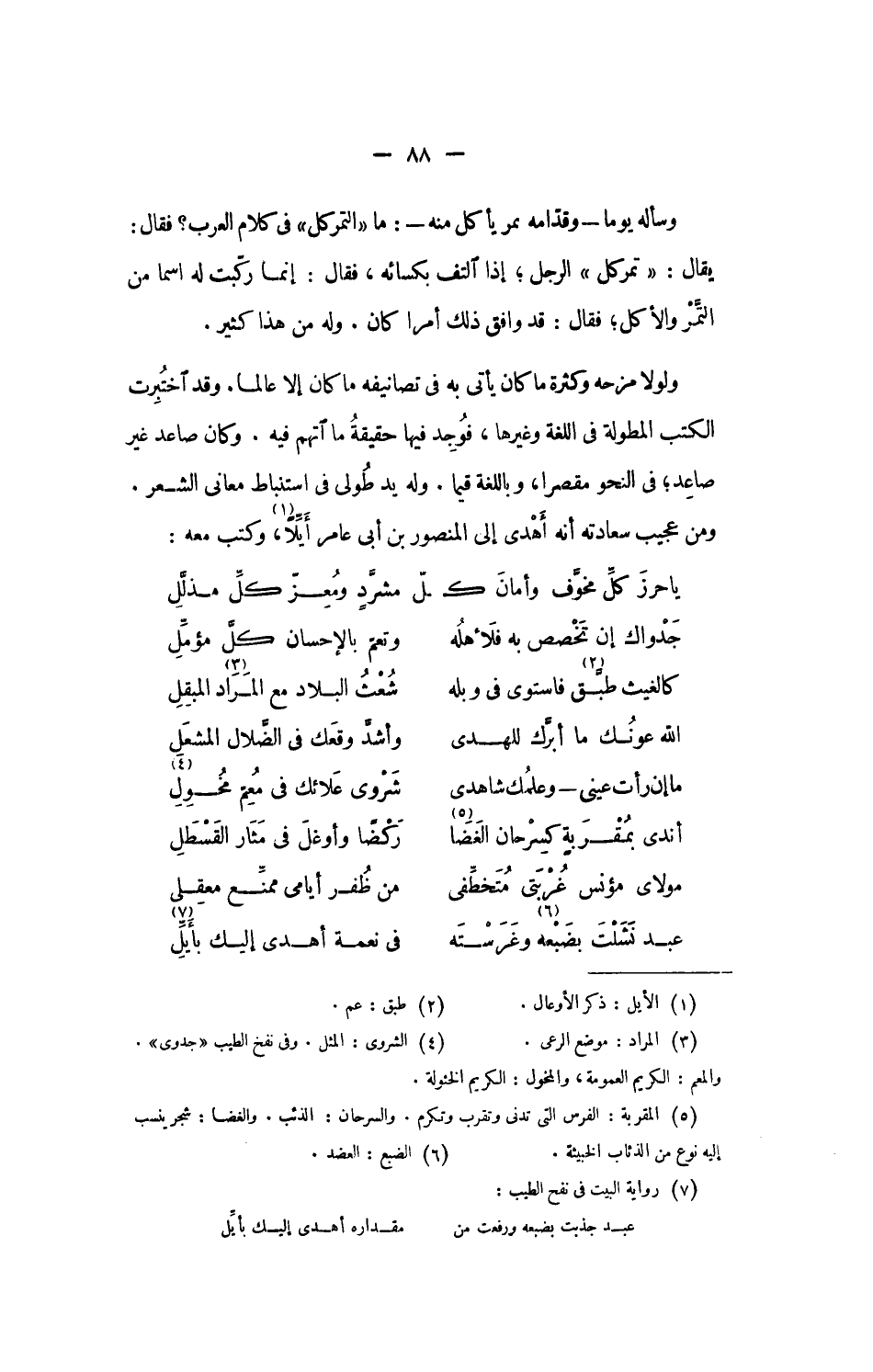 وسأله يوما- وقدّامه تمر يأكل منه-: ما «التمركل» فى كلام العرب؟ فقال: