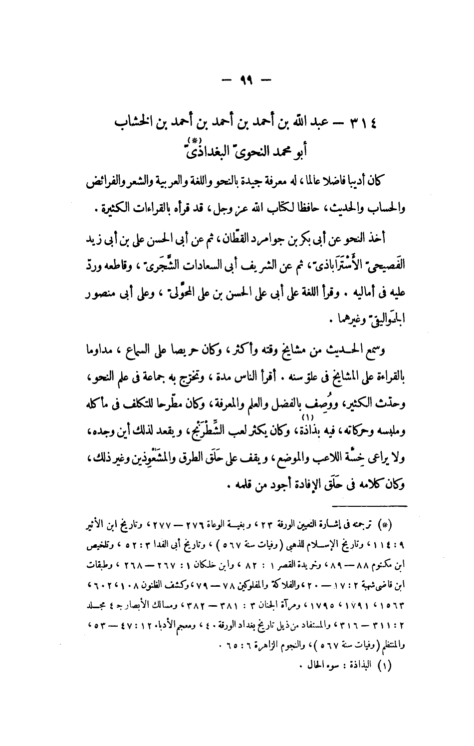 314 - عبد الله بن أحمد بن أحمد بن أحمد بن الخشاب أبو محمد النحوىّ البغداذىّ [1]