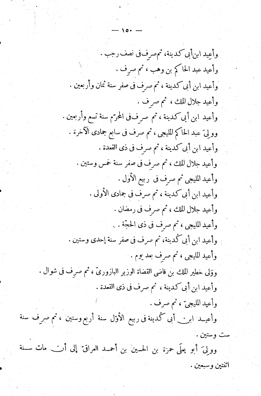 وأعيد ابن أبي كدينة، قم صرف في ذي القعدة.
