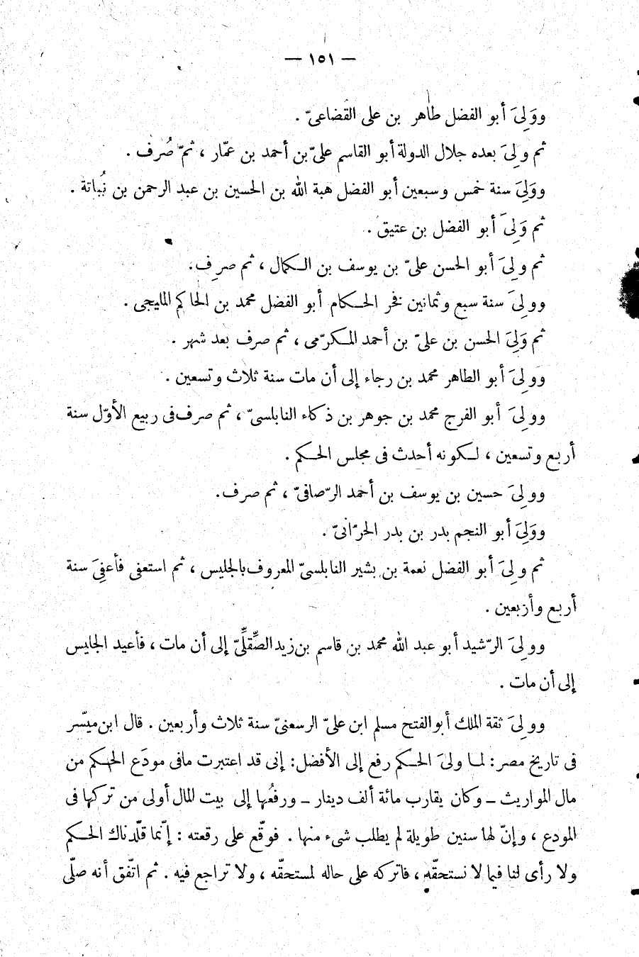 وولي أبو الفضل طاهر بن علي القضاعي.