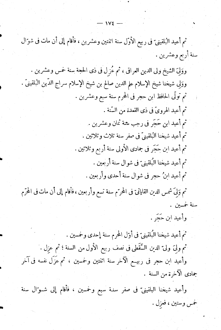 ثم أعيد شيخنا البلقيني في صفر سنة ثلاث وثلاثين.