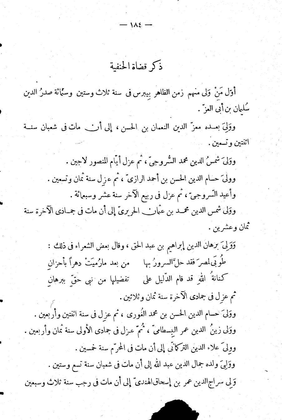 أول من ولي منهم زمن الظاهر بيبرس في سنة ثلاث وستين وستمائة صدر الدين سليمان بن أبي العز.