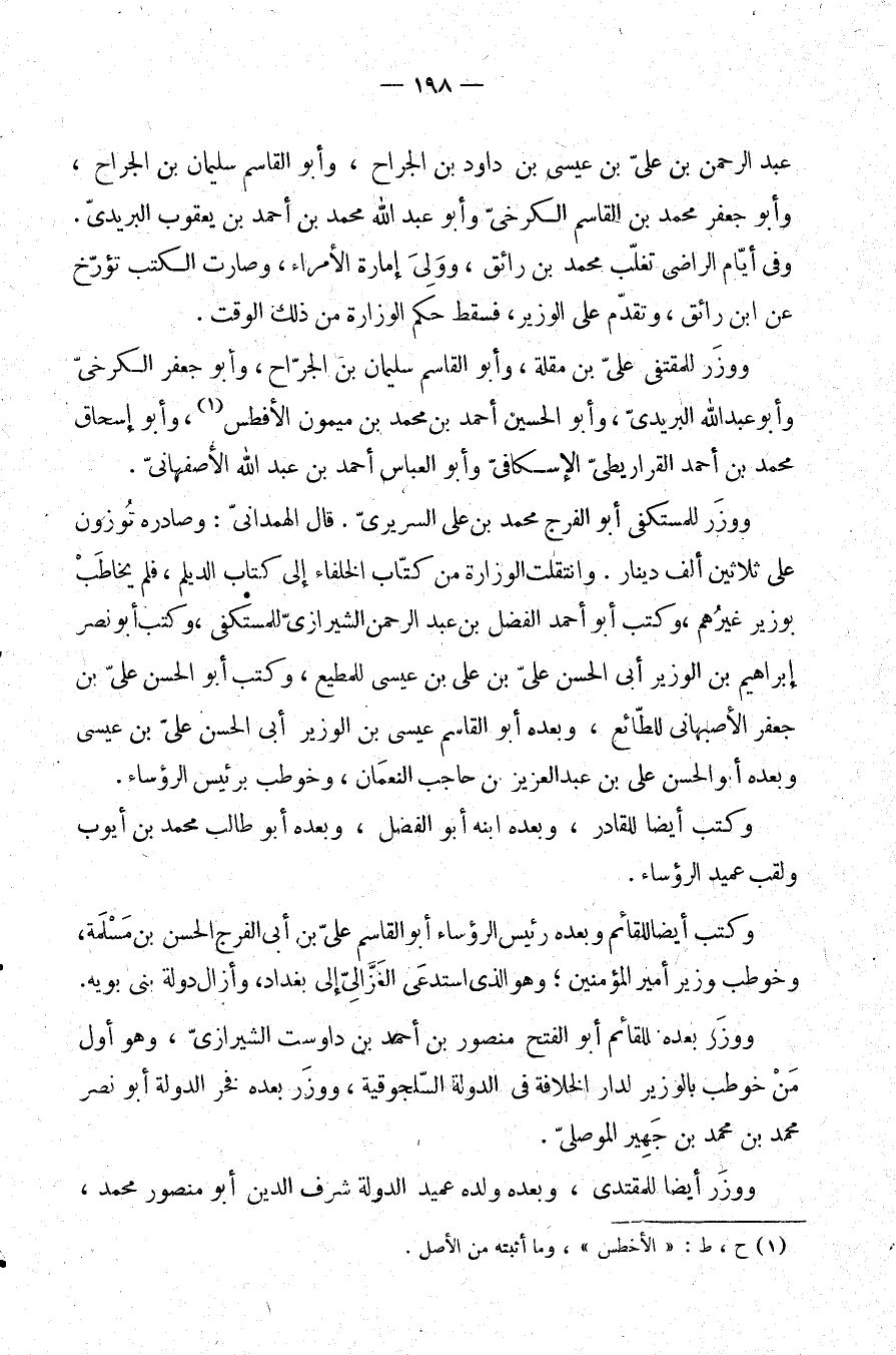 ووزر للمقتفي علي بن مقلة، وأبو القاسم سليمان بن الجراح، وأبو جعفر الكرخي وأبو عبد الله البريدي، وأبو الحسين أحمد بن محمد بن ميمون الأفطس (¬1) ، وأبو إسحاق محمد بن أحمد القراريطي الإسكافي، وأبو العباس أحمد بن عبد الله الأصفهاني.