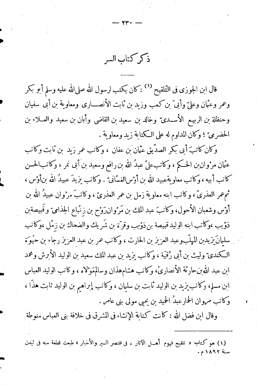 وقال ابن فضل الله: كانت كتابة الإنشاء في المشرق في خلافة بني العباس منوطة