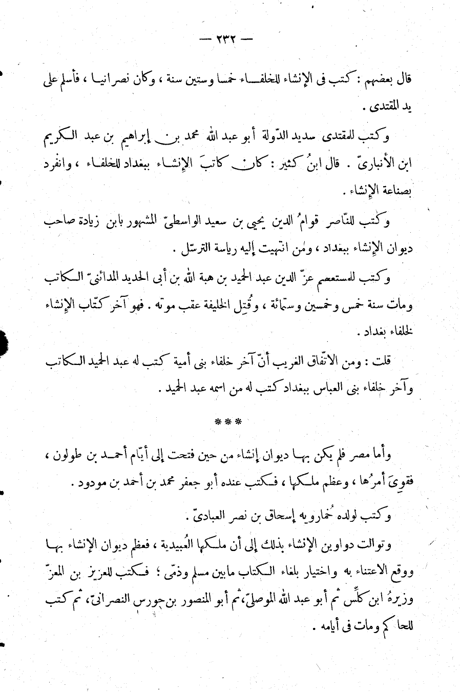 قلت: ومن الاتفاق الغريب أن آخر خلفاء بني أمية كتب له عبد الحميد الكاتب، وآخر خلفاء بني العباس ببغداد كتب له من اسمه عبد الحميد.