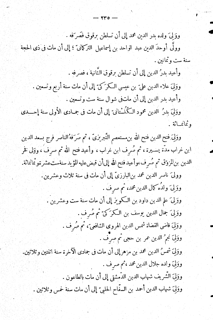 وولي ولده بدر الدين محمد إلى أن تسلطن برقوق فصرفه.