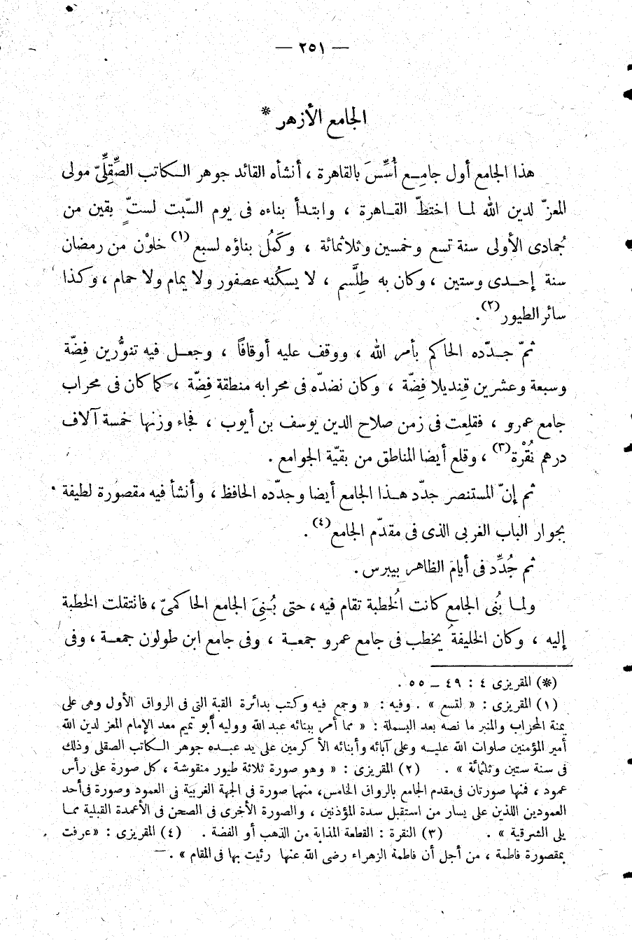(¬4) المقريزي: "عرفت بمقصورة فاطمة، من أجل فاطمة الزهراء -رضي الله عنها- رئيت بها في المنام".
