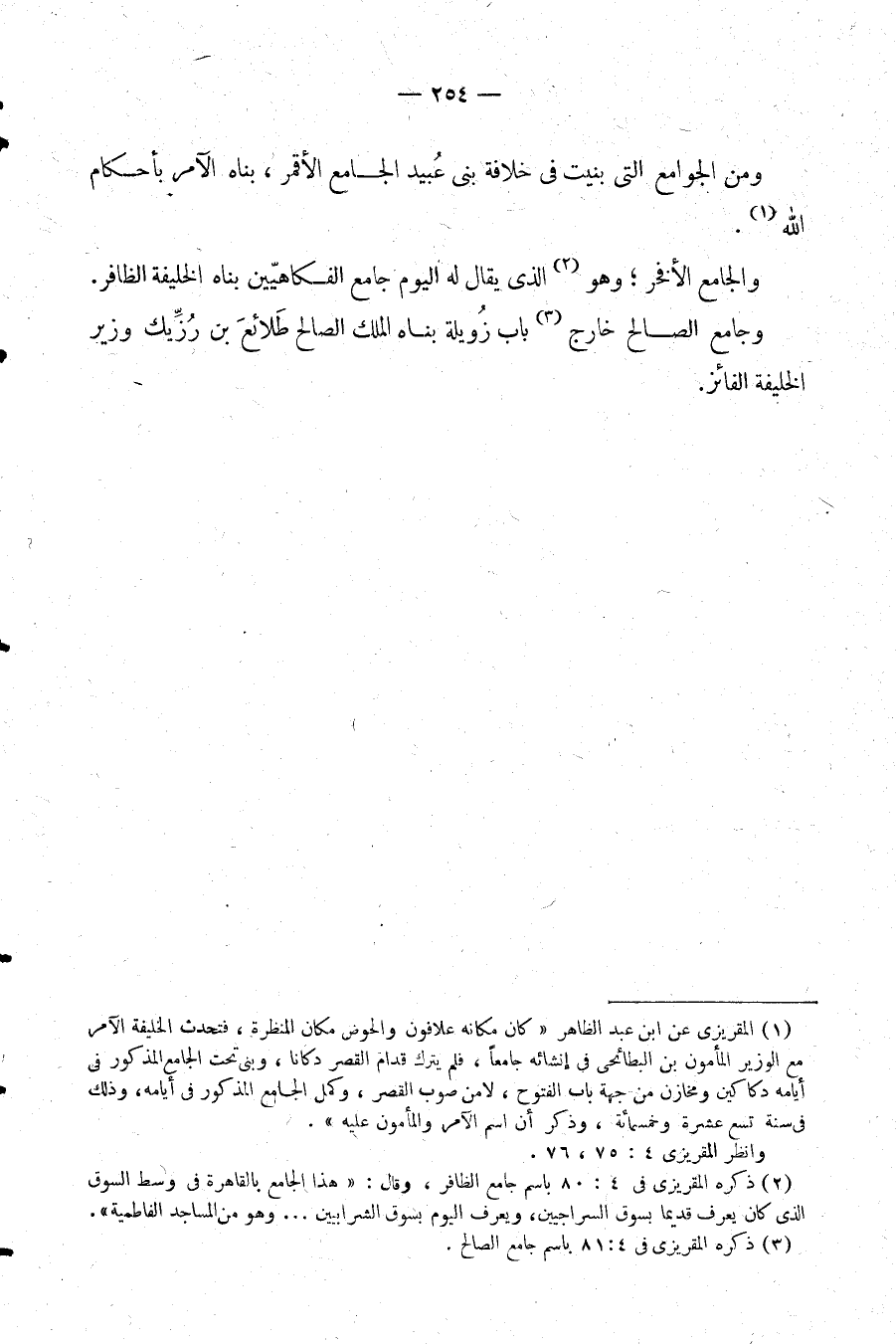 (¬2) ذكره المقريزي في 4: 80 باسم جامع الظافر، وقال: "هذا الجامع بالقاهرة في وسط السوق الذي كان يعرف قديما بسوق السراجيين، ويعرف اليوم بسوق الشرابيين.... وهو من المساجد الفاطمية".