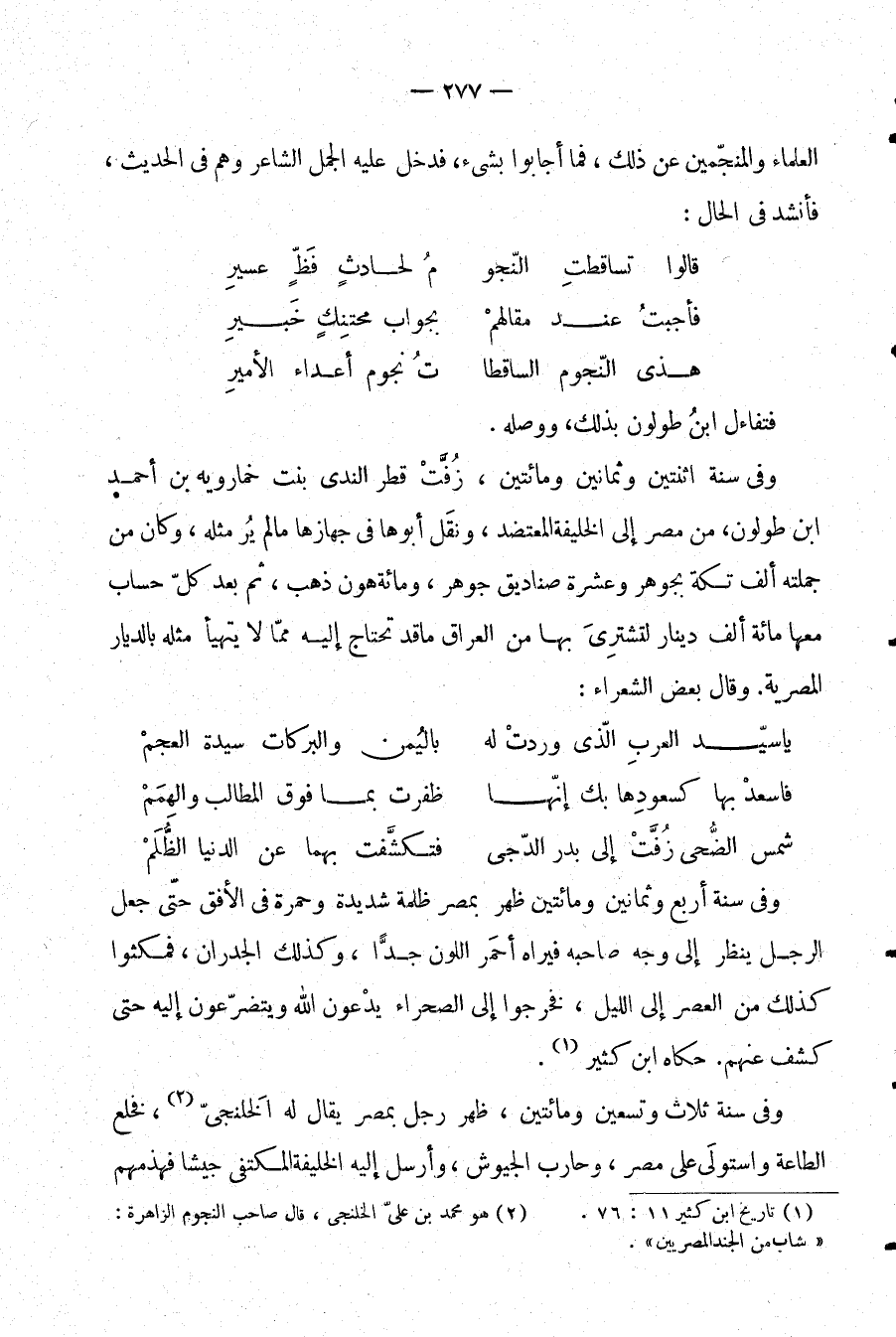 العلماء والمنجمين عن ذلك، فما أجابوا بشيء، فدخل عليه الجمل الشاعر وهم في الحديث، فأنشد في الحال: