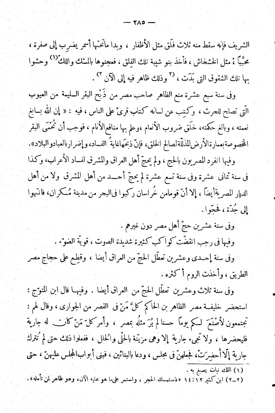 وفي سنة ثلاث وعشرين تعطل الحج من العراق أيضا. وفيها قال ابن المتوج: استحضر خليفة مصر الظاهر بن الحاكم كل من في القصر من الجواري، وقال لهم: تجتمعون لأصنع لكم يومًا حسنا لم ير مثله بمصر، وأمر كل من كان له جارية فليحضرها، ولا تجيء جارية إلا وهي مزينة بالحلي والحلل، ففعلوا ذلك حتى لم تترك جارية إلا أحضرت، فجعلهن في مجلس، ودعا بالبنائين، فبنى أبواب المجلس عليهن، حتى