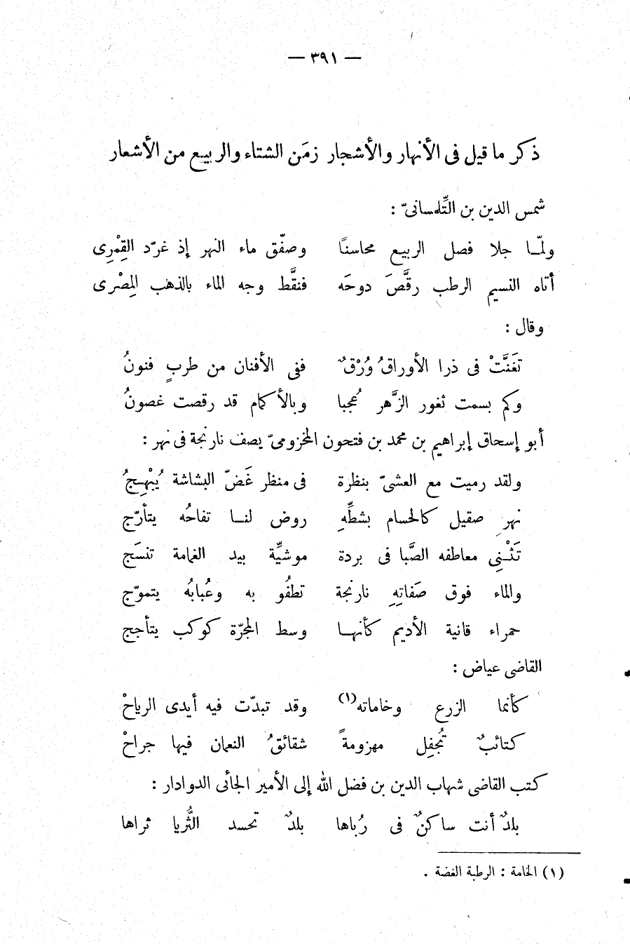 ذكر ما قيل في الأنهار والأشجار زمن الشتاء والربيع من الأشعار: