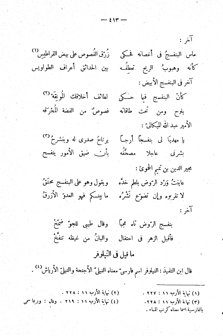 (¬4) نهاية الأرب 11: 219، وقال: وربما سمي بالفارسية اسما معناه كرنب الماء.