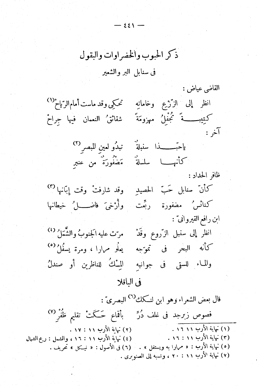 (¬7) نهاية الأرب 11: 20، ونسبه إلى الصنوبري.