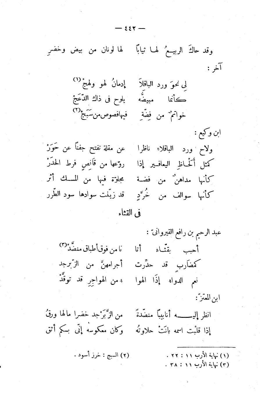 أحبب بقثاء أتانا من ... فوق أطباق منضد (¬3)