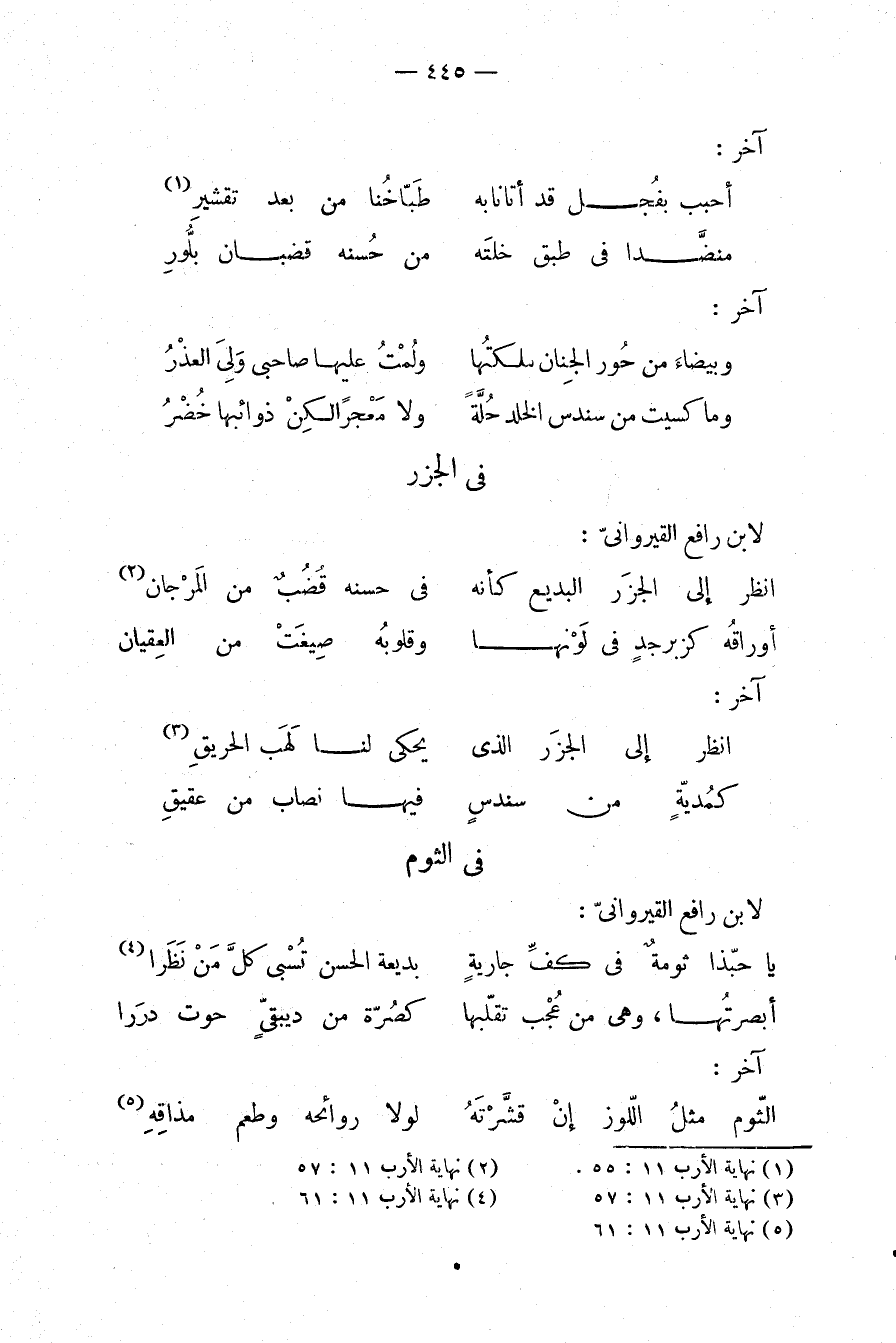انظر إلى الجزر البديع كأنه ... في حسنه قضب من المرجان (¬2)