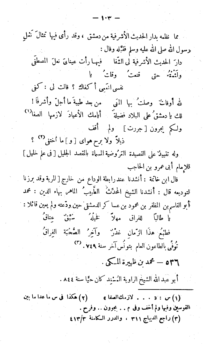 مما نظمه بدار الحديث الأشرفية من دمشق، وقد رأى فيها تمثال نعل رسول الله صلّى الله عليه وسلم فقبّله وقال: