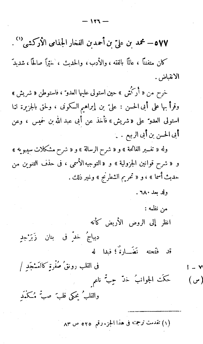577 - محمد بن علىّ بن أحمد بن الفخار الجذامى الأركشى (1).