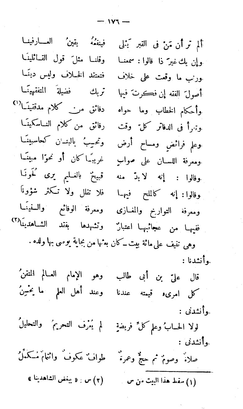 وعلم فرائض ومساح أرض … وتحسب بالبنان كحاسبينا