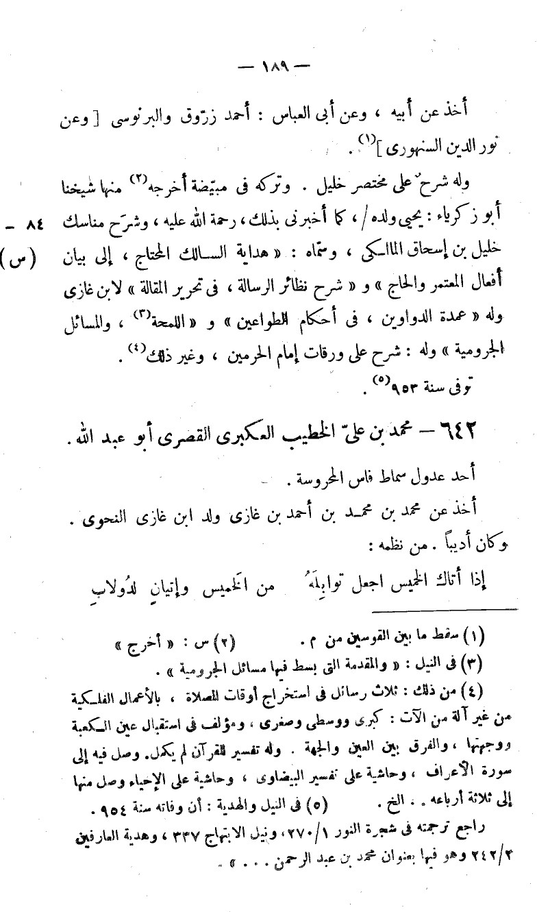 (5) فى النيل والهدية: أن وفاته سنة 954. راجع ترجمته فى شجرة النور 1/ 270، ونيل الابتهاج 337، وهدية العارفين 2/ 242 وهو فيها بعنوان محمد بن عبد الرحمن. . .».