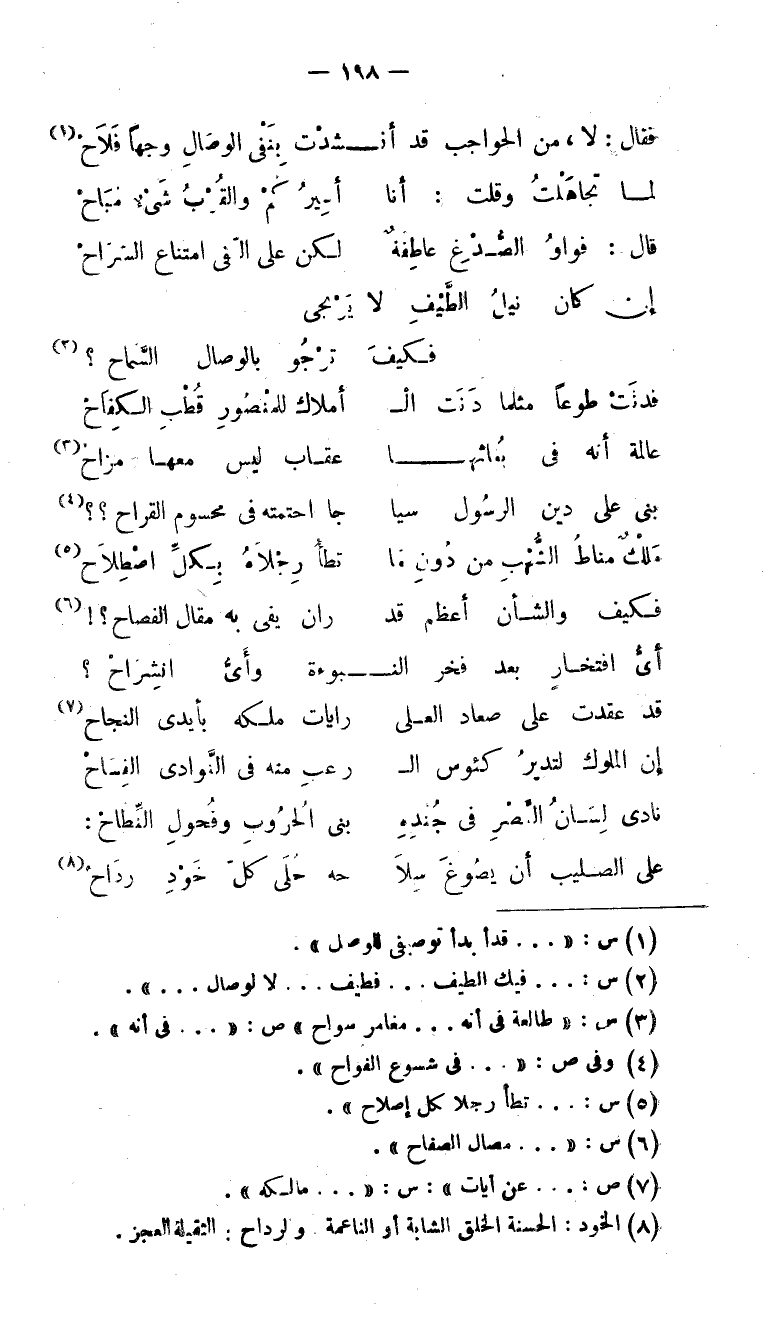 فقال: لا، من الحواجب قد … أنشدت بنفى الوصال وجها فلاح (1)