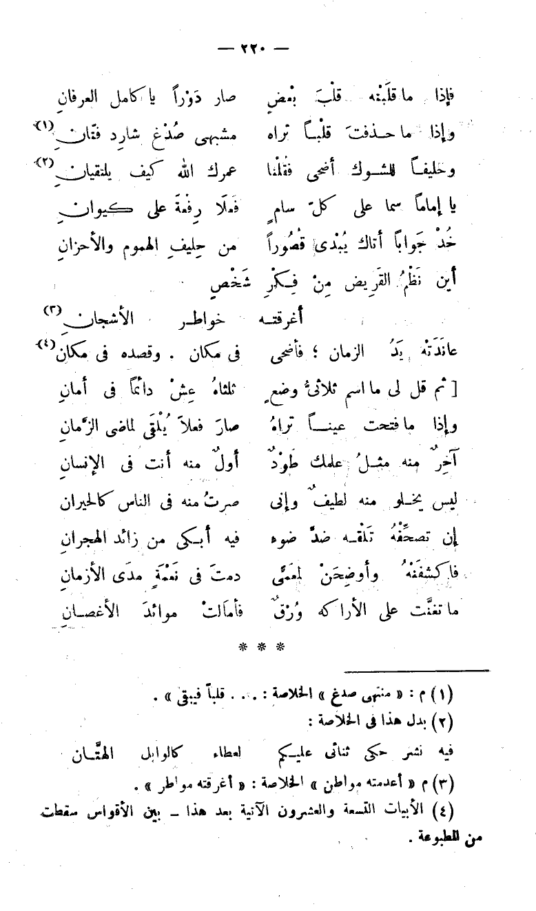 (1) م: «منتهى صدغ» الخلاصة: . . . قلبا فيبقى».