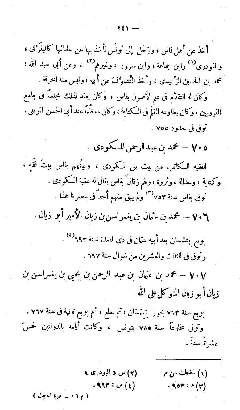 توفى بفاس سنة 753 (3) ولم يبق منهم أحد فى عصرنا هذا.