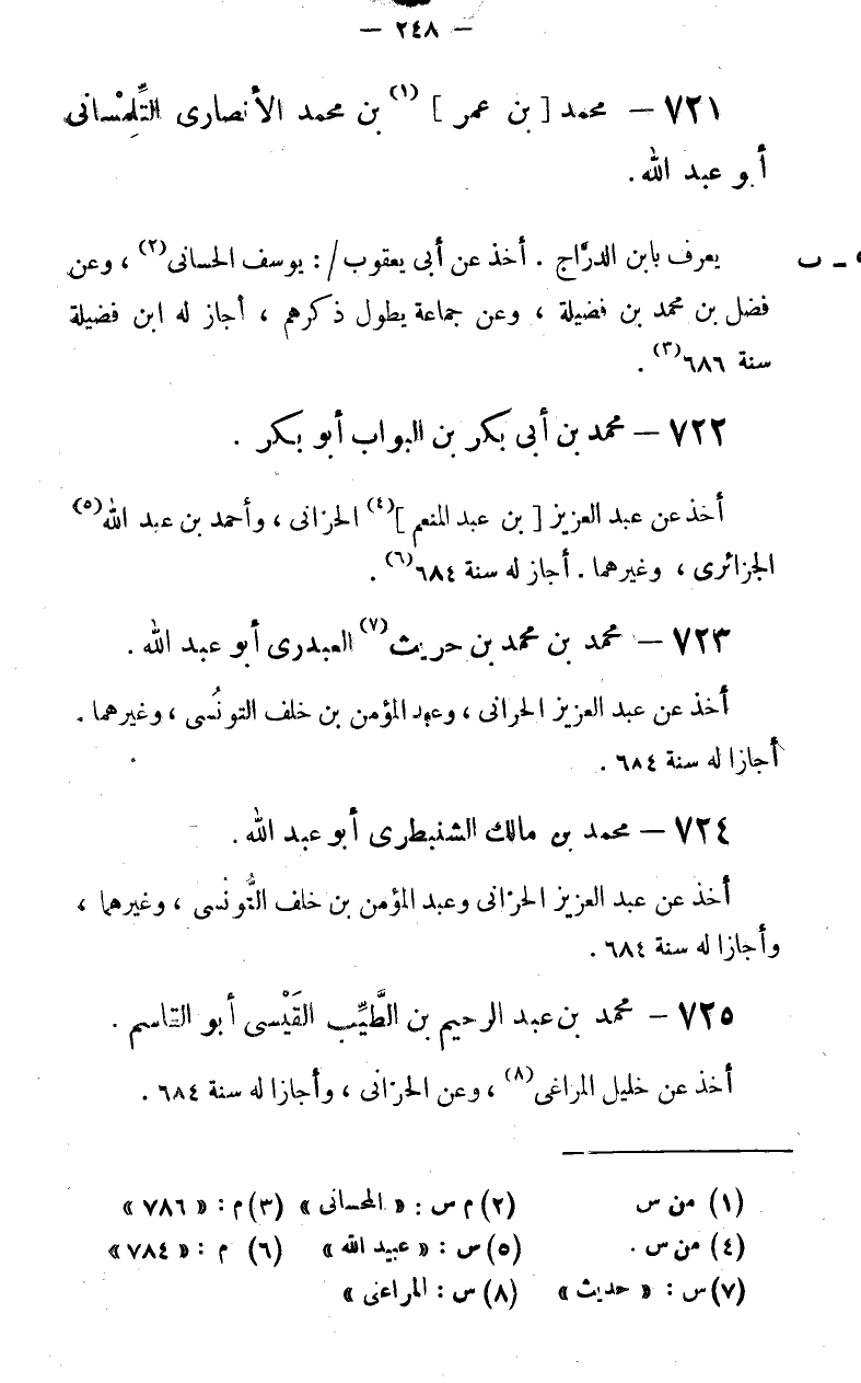 721 - محمد [بن عمر] (1) بن محمد الأنصارى التّلمسانى