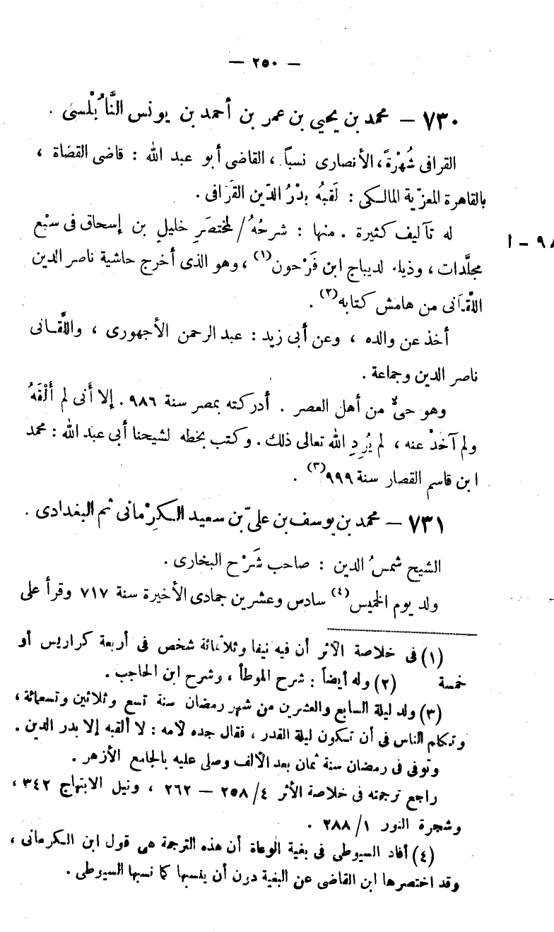 (4) أفاد السيوطى فى بغية الوعاة أن هذه الترجمة هى قول ابن الكرمانى، وقد اختصرها ابن القاضى عن البغية دون أن ينسبها كما نسبها السيوطى.