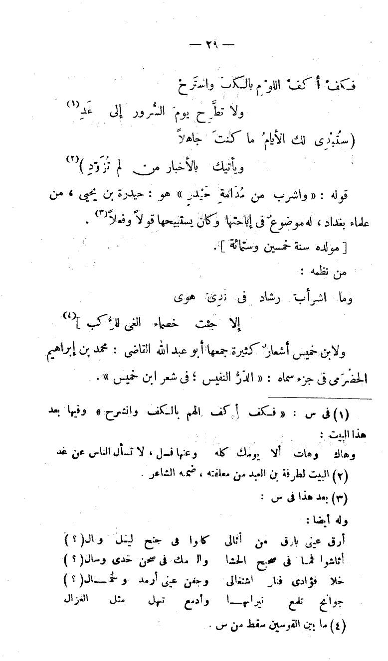 قوله: «واشرب من مدامة حيدر» هو: حيدرة بن يحيى، من علماء بغداد، له موضوع فى إباحتها وكان يستبيحها قولا وفعلا (3).