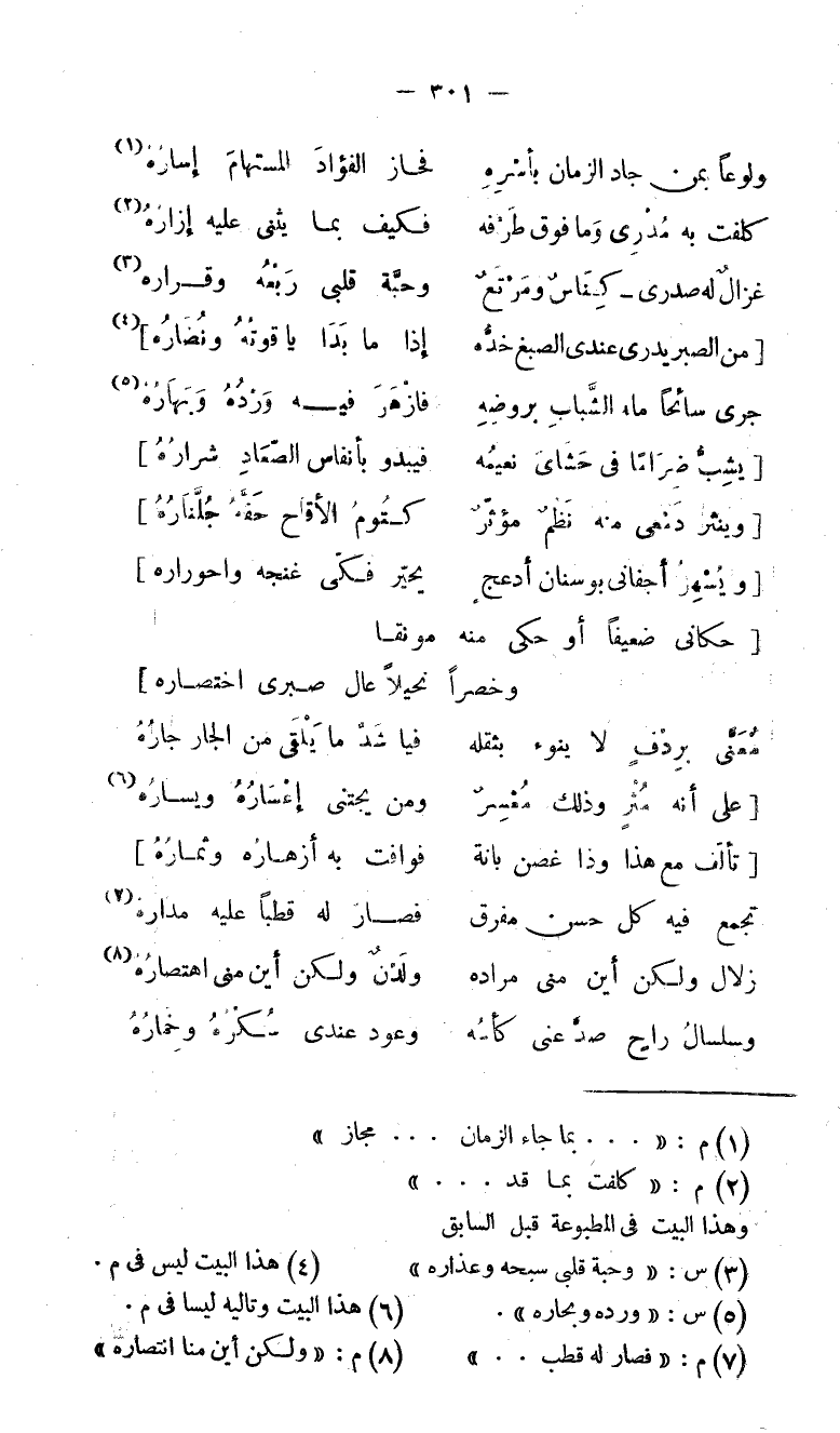 (2) م: «كلفت بما قد. . .» وهذا البيت فى المطبوعة قبل السابق