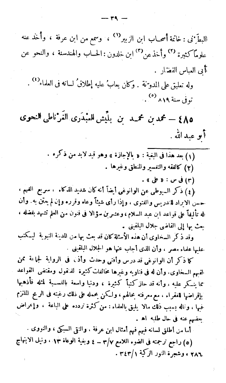 (5) راجع ترجمته فى الضوء اللامع 7/ 3 - 4 وبغية الوعاة 13، ونيل الابتهاج 286، وشجرة النور الزكية 1/ 343.