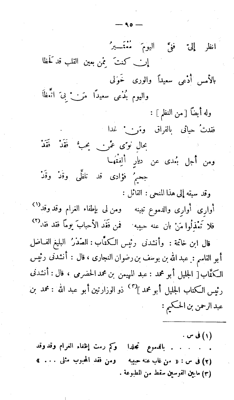 (2) فى س: «من غاب عنه حبيبه ومن فقد المحبوب مثلى. . .»
