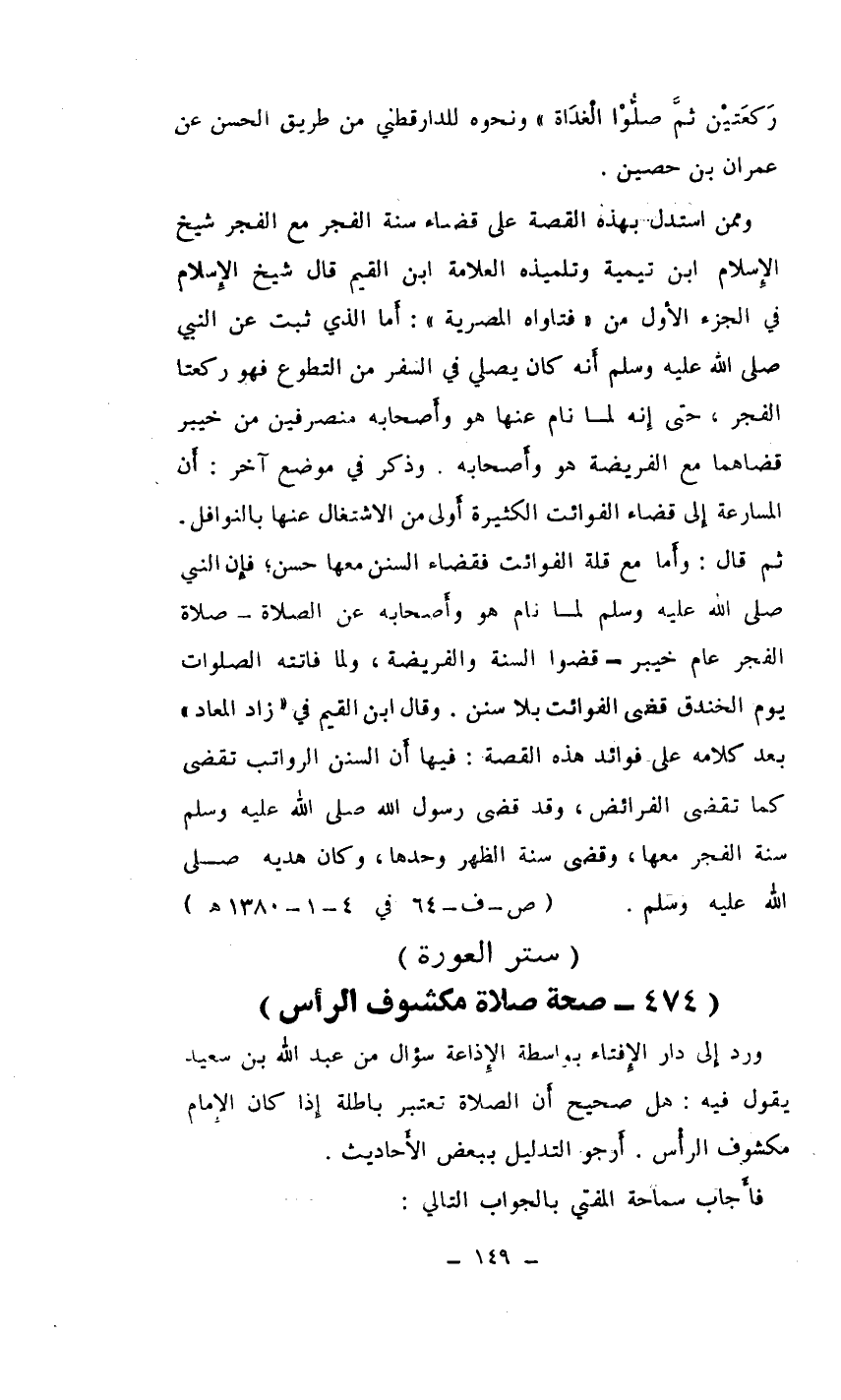 رَكعَتيْن ثمَّ صلُّوْا الْغدَاة)) ونحوه للدارقطني من طريق الحسن عن عمران بن حصين.