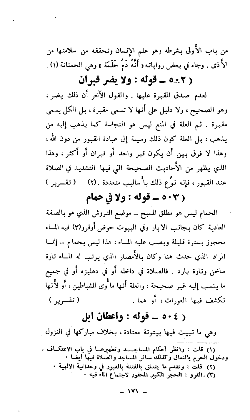 (¬1) قلت: وانظر أحكام المساجد وتطهيرها في باب الاعتكاف، ودخول الحرم بالنعال وكذلك سائر المساجد والصلاة فيها أيضًا.